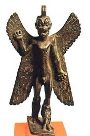 Pazuzu και τη Lilith. Ο Pazuzu ήταν ένας Ασσυριακός και Βαβυλωνιακός δαίμονας της πρώτης χιλιετίας π.Χ. Παριστάνεται με κυνώδες πρόσωπο και εξογκωμένα μάτια. Είναι φτερωτός, το πέος του παριστάνεται ως κεφάλι φιδιού και έχει νύχια αρπακτικού πουλιού στα πόδια. Αν και θεωρείται κακός και υποχθόνιος δαίμων, φαίνεται ότι τον επικαλούνταν συχνά οι Μεσοποτάμιοι για να τους προστατέψει από τη Lamashtu. Δεν είναι παράξενο λοιπόν το ότι έχουν βρεθεί γυναικεία κοσμήματα, τα οποία, είτε έχουν το σχήμα του κεφαλιού του Pazuzu, είτε έχουν το όνομά του χαραγμένο επάνω τους. Έχει βρεθεί επίσης ένα μπρούτζινο φυλακτό που παριστάνει τον Pazuzu και από την πίσω πλευρά γράφει: “Είμαι ο θεός Pazuzu, γιος του θεού Hambi, βασιλιάς των κακών πνευμάτων του αέρα”.